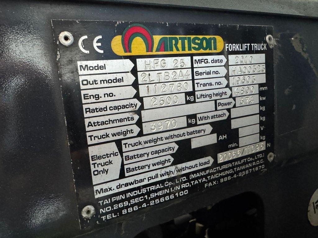 Lot 16: ARTISAN Model HFG25 2500KG Capacity Gas Forklift Truck. Year 2010 Number of watchers: 2