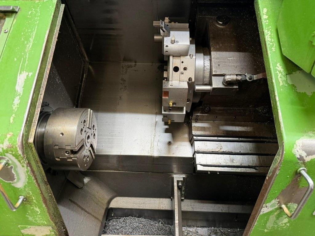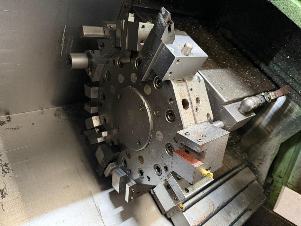 210 mm dia. 3 Jaw Power Chuck. 12 Station Turret. No Tailstock. Spindle Speeds up to 4000rpm. Max. Turning Length 480mm. Max. Turning Dia. 248mm. Machine Dimensions L x W x H 2300mm x 1300mm x 1800mm. Approximate Weight 2200kg. Serial No: 1030.