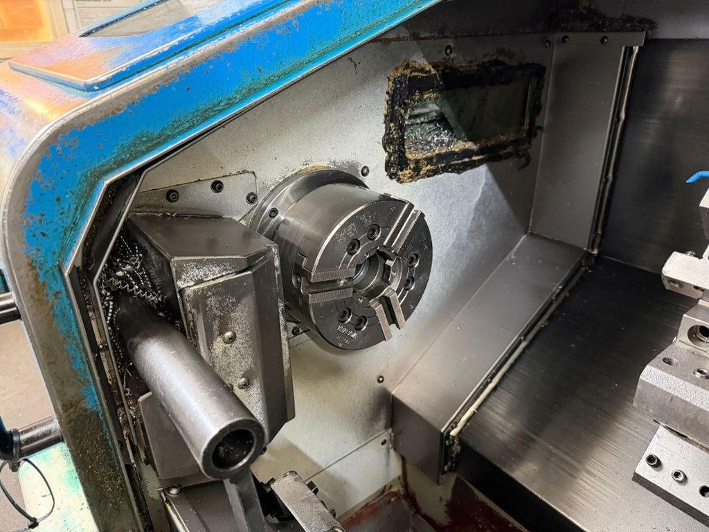 170mm dia. 3 Jaw Power Chuck. Tailstock. 8 Station Turret. Max turning length 249mm. Max turning dia 180mm . Spindle speeds up to 4500rpm. Machine dimensions L x W x H 2100mm x 1250mm x 1700mm. Approximate weight 2300kg. Serial No: R12709