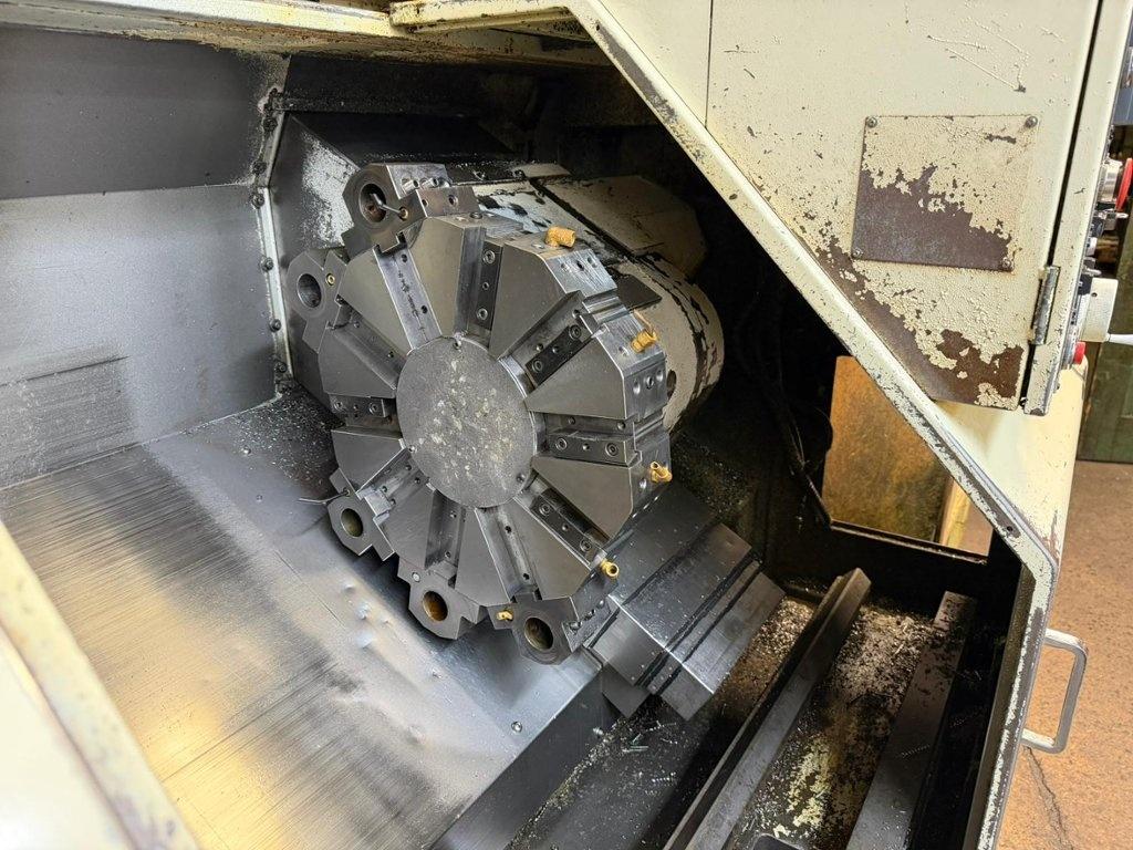 Collet Chuck with Collets. 10 Station Turret. Spindle Speeds up to 3500rpm. Max. turning dia. 320mm. Max. turning length 550mm. Machine Dimensions L x W x H 3750mm x 1700mm x 1800mm. Approximate weight 2500kg. Serial No: 436106. Machine has Tailstock but needs attention / repair.