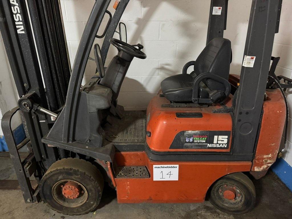 Lot 14: NISSAN Model PD01E703407 1500KG Capacity Gas Forklift Truck. Year 2004 (REQUIRES ATTENTION) Number of watchers: 2