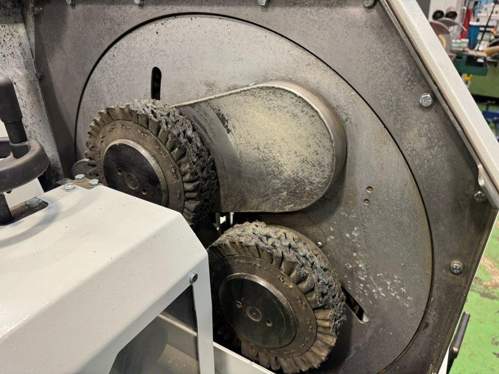 Working Capacity (mm) 40mm -114mm dia. Feeding Speed 0-3 metres/min. Polishing Wheels Speed up to 35 metres/sec. Polishing Wheels Dimensions (3x) (2x) 180mm-240mm dia. Polishing Wheels Motor (kW) 5,5. Wheel Motor (kW) 0,37. Consumption 22 amp. MP100 round tube machine mirror polishes round tubes, straight or curved. Three planetary polishing wheels rotate around the tube making high pressure and delivering a high gloss mirror polishing. The machine features brushes pressure control by foot pedal. This enables the operator to control the applied force during tube polishing operation. The automatic feeding system transports straight tubes safely through the polishing units, enabling a consistent and high mirror polishing quality. Machine Dimensions L x W x H 1250mm x1250mm x1550mm. Weight approx 420kgs.