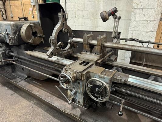 Swing over bed 21''. Swing over cross slide 13''. Distance between centres 96''. Spindle speeds 13.7 - 1100 rpm. Spindle dia. 3.1/2''. Motor 12.5 HP . Fitted with 400mm dia. 3 jaw chuck. 4 jaw chuck. 4 way toolpost. Tailstock. 2 x Boring bar supports for deep hole boring. Boring bar. Dual Dials. 3 point roller steady.Coolant.Serial No. 36459-10-66. Overall dimensions L x W x H 228''x 51'' x 66''. Approximate weight 6000kg.