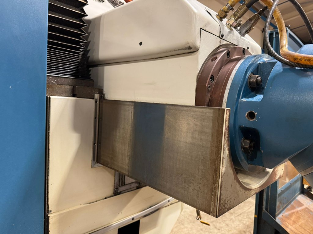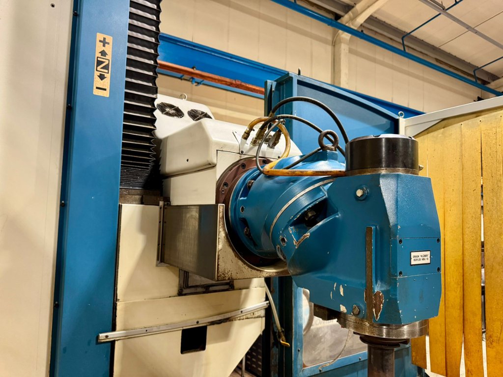 Table size 4200mm x 1000mm. Longitudinal travel 4000mm. Cross traverse 1200mm. Vertical traverse 1500mm. Maximum weight on table 10000 kg. Spindle taper 50 ISO. Maximum speed range 3000 rpm. Main motor power 28 kW. Rapids 10m/min. Heidenhain TNC530 Control. Manual toolchange. Manual indexing head. Coolant. Overall dimensions L x W x H 9820mm x 6000mm x 3752mm. Approximate weight 21,600 kg