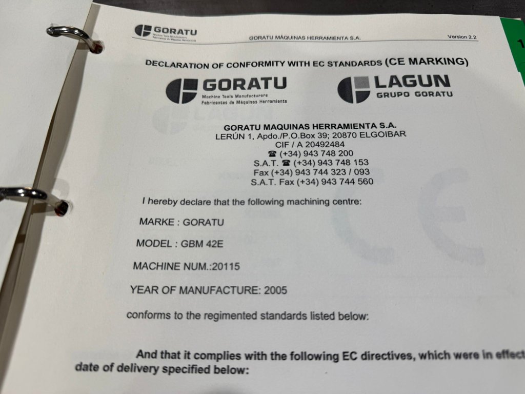 Lot 2: GORATU LAGUN GBM42 CNC Bed Milling Machine. Year 2005