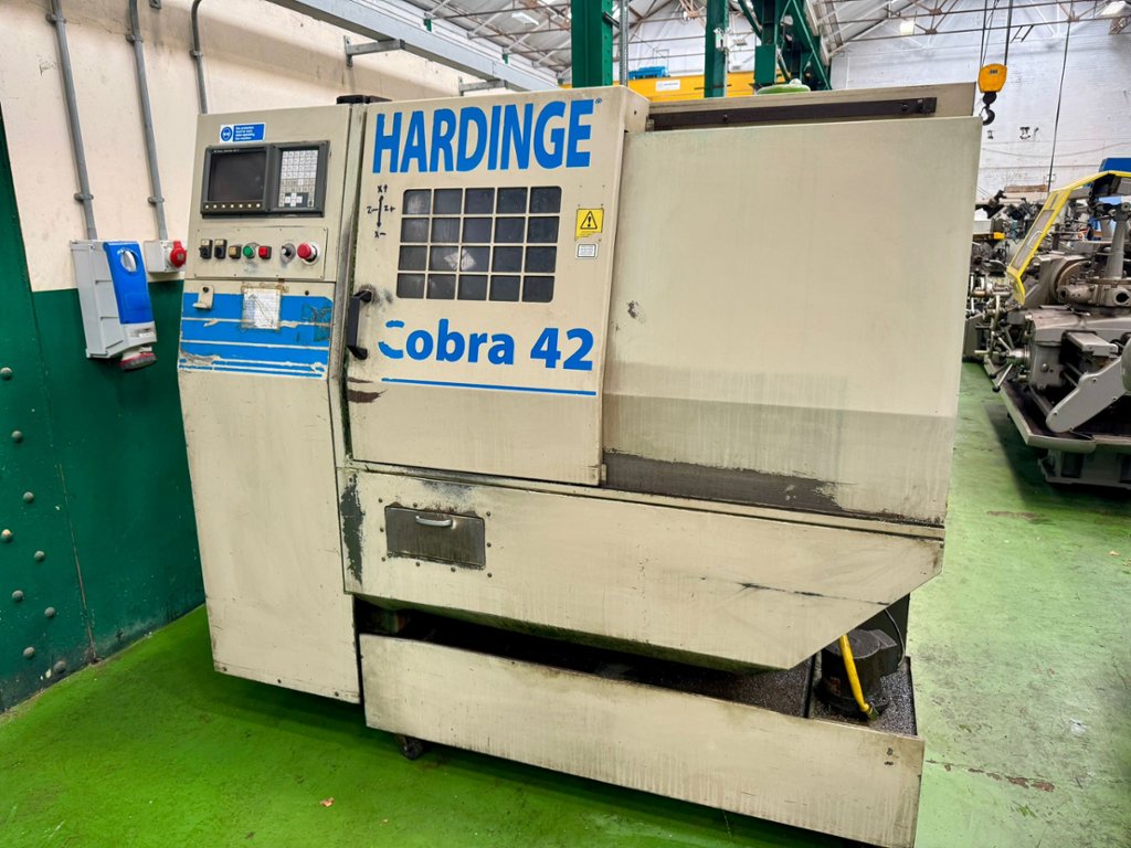 Lot 13: HARDINGE Cobra 42 CNC Chucking Lathe with Hydrafeed Barfeed. GE-Fanuc 21TB Control.