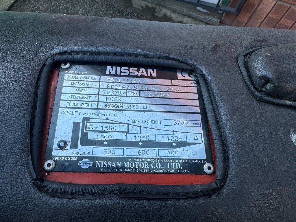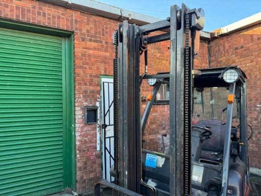 SKU No: 250142. 6558 Hours. Max. lift height 3700mm. Side Shift. Fork Length 1095mm. Serial No: pd01E703308. Length 3300mm. Width 1100mm. Height 2400mm. Weight 2850Kg