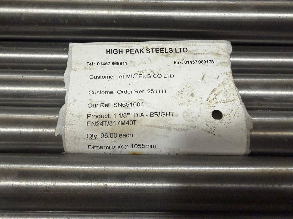 Lot 253: Large Qty of EN24T BRIGHT Drawn Bar 28.58mm x 1055mm Number of watchers: 0