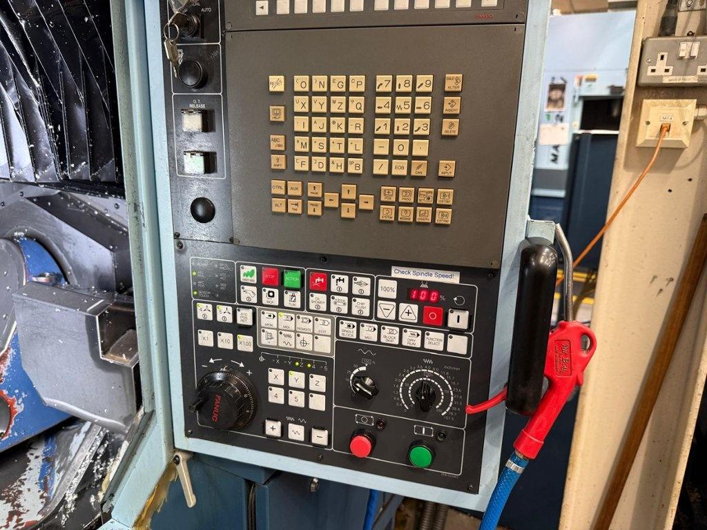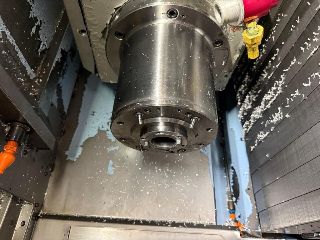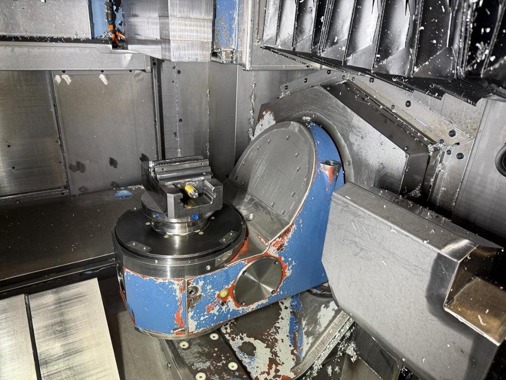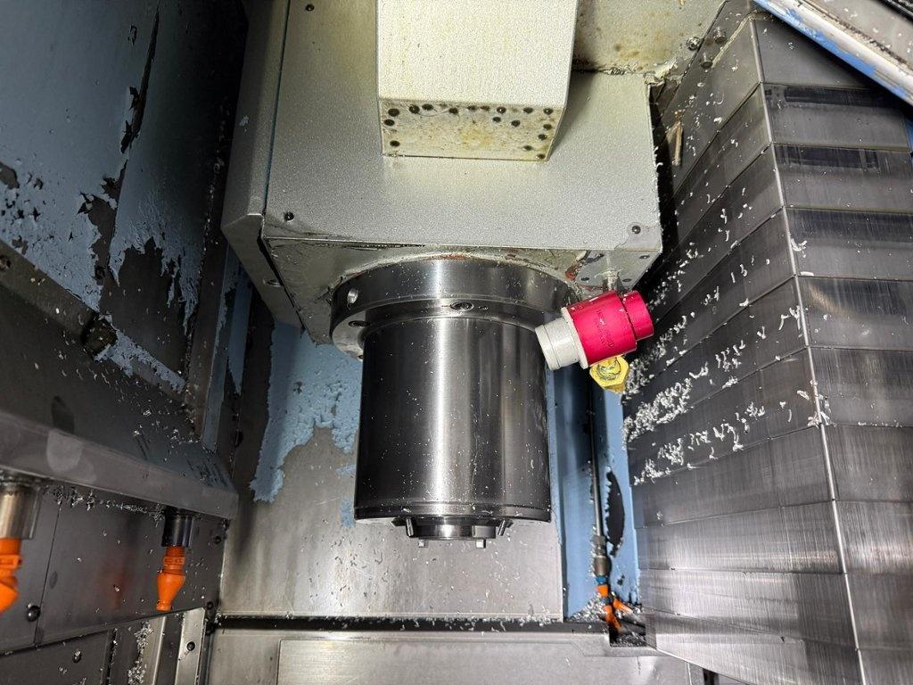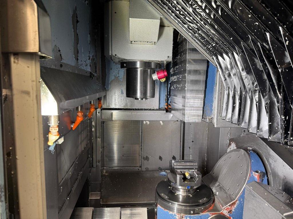 Twin pallet. Axis X 510 mm. Axis Y 410 mm. Axis Z 450 mm. B axis +/- 100 degrees. C axis 0.001 degrees 360 rotation. Max. part weight 40 kg. Maximum workpiece size 250mm x 250mm x 250mm. Number of tool pockets 80. Spindle taper BT 40. Max. spindle speed 15000 rpm. Spindle motor power 7.5 kW. FANUC G-Tech 30i. Year of manufacture 2004.