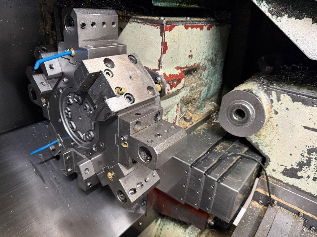 170mm dia. 3 Jaw Power Chuck. Tailstock. 8 Station Turret. Max turning length 249mm. Max turning dia 180mm . Spindle speeds up to 4500rpm. Machine dimensions L x W x H 2100mm x 1250mm x 1700mm. Approximate weight 2300kg. Serial No: R12709