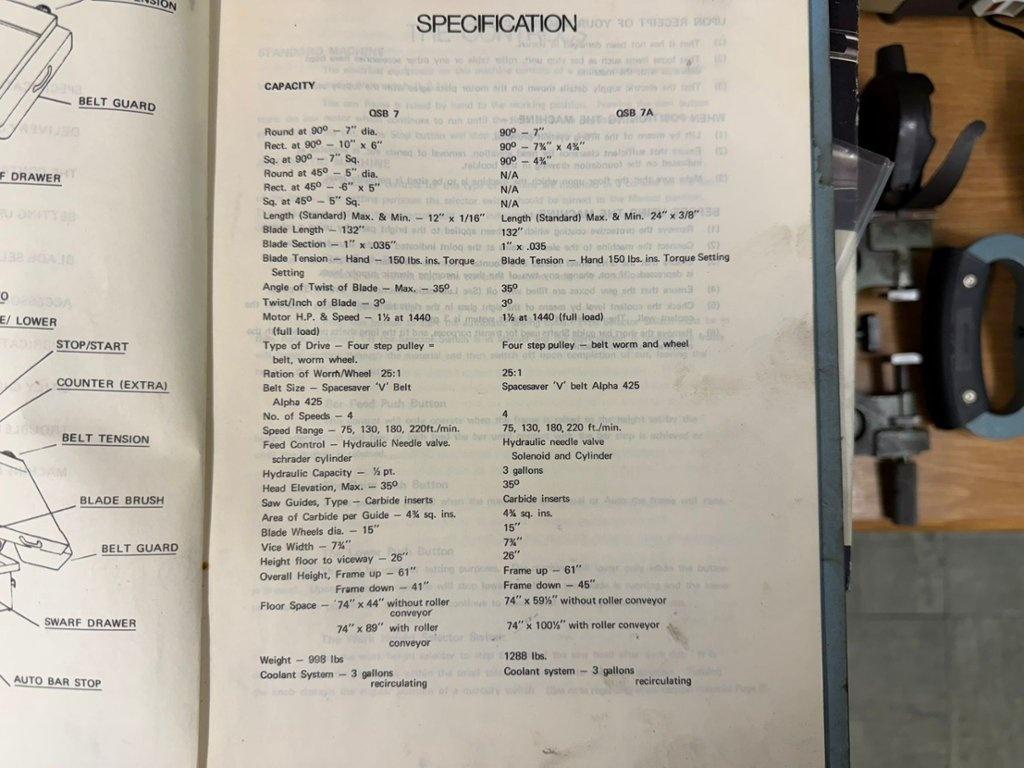 Lot 31: QUALTERS & SMITH B7A Automatic Horizontal Bandsaw with Run Off Table (Steel Stock not included) Number of watchers: 0