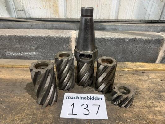 Lot 137: 50 International 1'' Threaded Deadlock Toolholder with HSS Milling Cutters etc as lotted