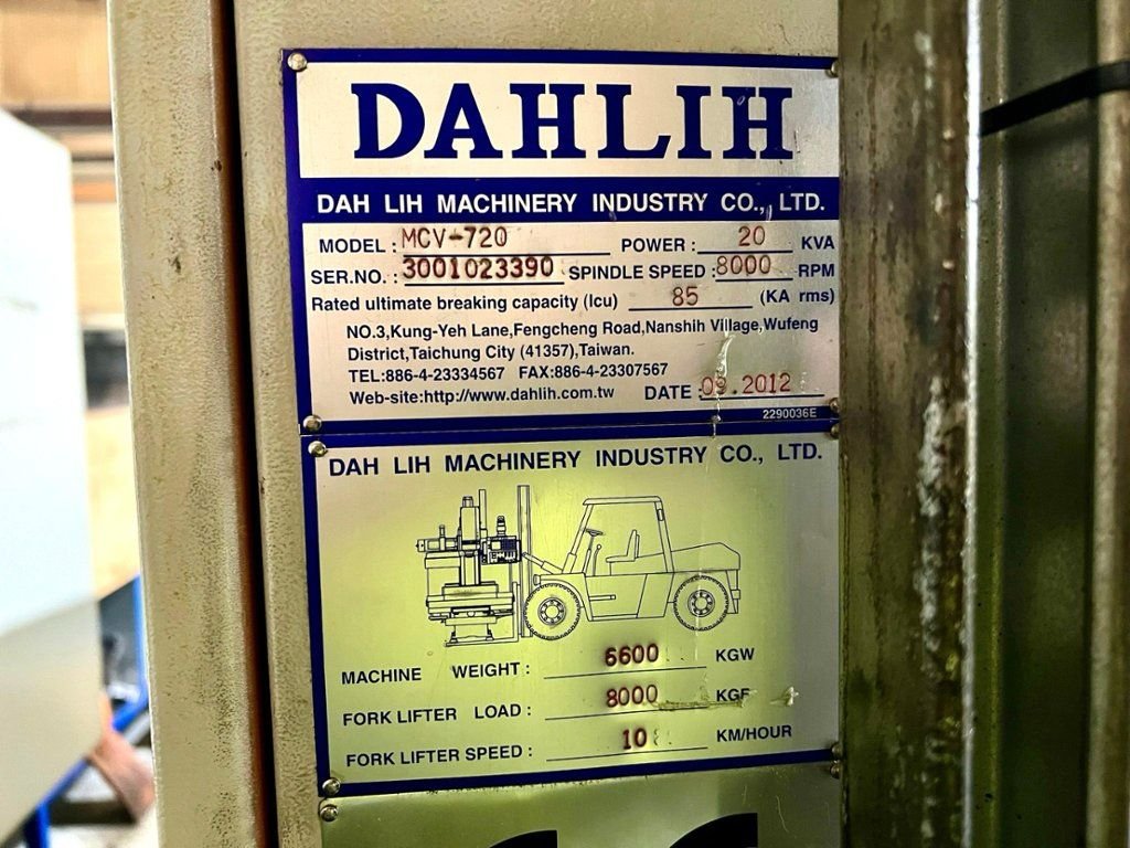 Table size 950mm x 560mm. T slots no. & size 5 x 18mm. Table loading 500kg. X/Y/Z travels 720/450/500mm. Min/Maximum distance between spindle and table surface 150/660mm. 24 ATC. Spindle taper BT40. Spindle speed 8000 rpm. Cutting feed 10m/min. Rapids X/Y/Z 30/30/20m/min. Spindle motor 11 kW. Power requirement 20 kVA. Aproximate machine size 3118mm x 2640mm. Approximate weight 4400kg. Fanuc 0i-MD Control. Machine Serial No. 3001023390. Year 2012.