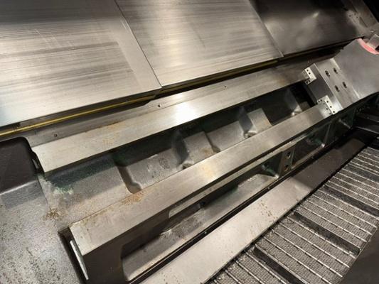 Swing over bed 770mm. Swing over cross slide 590mm. Maximum turning dia. 550mm. Maximum turning length 3114mm. X/Z travel 362mm/3114mm. Spindle speeds 2000rpm. Bar capacity 116.5mm. Fitted with 450mm dia. 3 jaw chuck. 500mm dia. capacity 3 point Rock Steady. 10 station turret. Tailstock. Qty of tooling as lotted.Fanuc Series 21i-TB CNC Control. Serial No.P40XL0054.Year 2008. Machine dimensions L x W x H 6400mm (with swarf conveyor 7700mm) x 2300mm x 2500mm high. Approximate weight 11,000 kg.