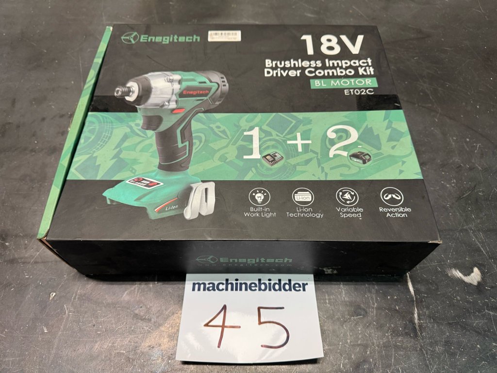 Lot 45: ENEGITECH 18 Volt Brushless Impact Driver Combo Kit