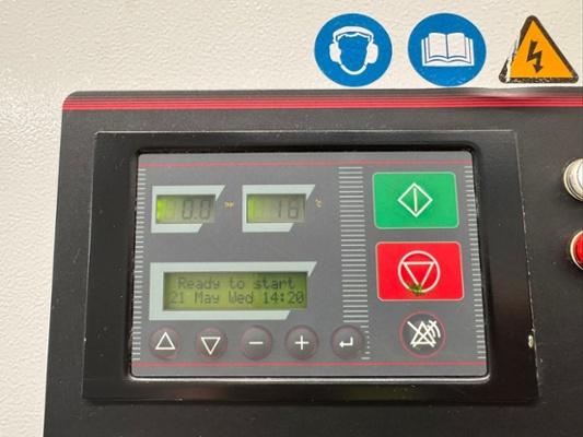 Capacity 11.5 cubic metres. Maximum pressure 7.5 bar. Speed of rotation 2329 rpm. Motor power 75 kW. Electrical supply 400/50 V/Hz. Serial No. F003559