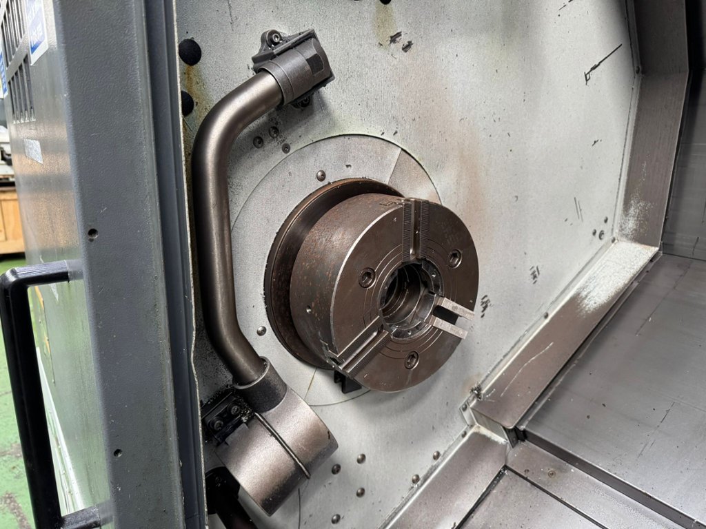 Main spindle: Spindle nose A2-8. Maximum turning dia. 366mm. Spindle speeds 4000 rpm. C Axis indexing 0.001°. Maximum bar capacity 80mm. Spindle power 18.5kW. Sub Spindle: Spindle nose A2-5. Maximum turning dia. 190mm. Spindle speeds 6000 rpm. C Axis indexing 0.001°. Maximum bar capacity 51mm. Spindle power 11kW. Travel 760mm. Turret: No.of positions 12. No of driven positions 12. X/Z stroke 260mm/795mm. Live tool speeds 6000 rpm. Live tools power 5.5 kW. Hydrafeed Multifeed arfeed MX-1B. Swarf conveyor. MSX-850BM MAPPS III Control. Serial No. NL251GH3402. Year 2007. - Machine dimensions: 4414mm x 2370mm x 2115 mm. Approximate weight 6200 kg.