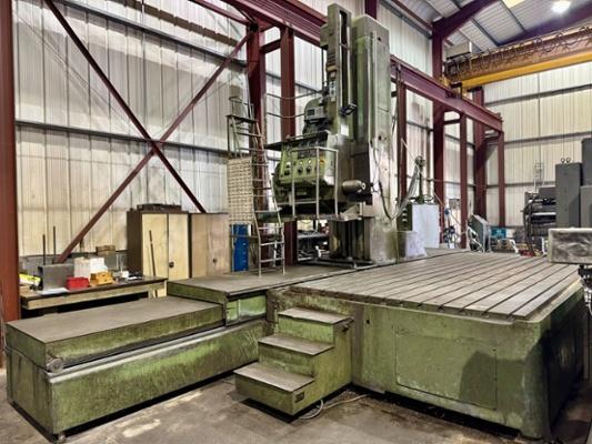 Table size 198'' x 92''. Spindle taper 50 International. X travel 165''. Y travel 84''. Z travel 24.4''. Spindle speeds 20 - 1200 rpm. Minimum distance spindle centre to table surface 24.4''. Manuals. Overall dimensions 452'' long x 196'' wide x 196'' high. Weight 40,000 kg. Machine has been dismantled prior to sale.